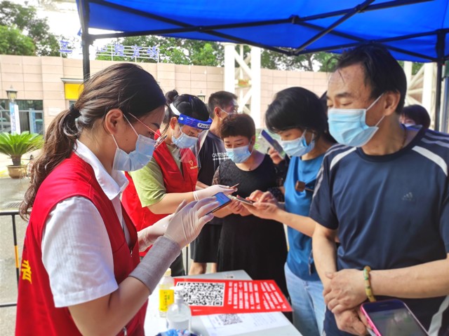 区人大代表,苏宁环球集团党委书记、南京苏宁物业管理有限公司总经理倪培玲: 7月25日,南京市第二轮全员核酸检测工作正在进行中,倪培玲代表考虑到街道人手紧张,主动组织本单位17名党员志愿者来到五台山体育中心核酸检测点,全力协助街道做好身份登记、秩序维护、现场引导等服务。