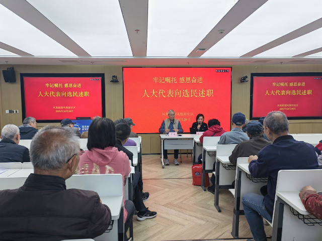 凤凰街道 近日,区人大代表季军和张月芹回到凤凰街道凤凰街社区,向辖区选民当面“交账”,汇报履职情况,接受群众“检阅”。社区“两委”干部、议政代表、居民代表等60余名选民代表听取报告并打分测评,气氛热烈又实在。