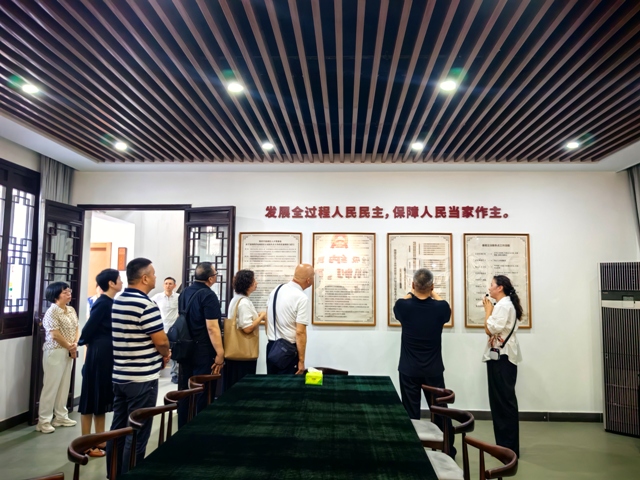 考察组一行来到鼓楼区劳模联盟工作站,参观了华侨路街道、宁海路街道天津新村社区、区总工会劳动模范联盟工作站和北京大成(南京)律师事务所等4个南京市基层立法联系点的集中展示,观摩了法治文化展示区的习近平总书记法治用典、传统法治名言文化墙,数字立法互动区的“立法直通车”“民意连心桥”线上法规二维码及线下民意征集箱,集中展示区的制度墙、劳模联盟组织架构及信息员队伍展示和其他基层立法联系点协作展示,听取了基层立法联系点的建设和运行情况介绍。 参观过程中,双方还就基层立法联系点运行机制、民意征集方式、《实施细则》相关规范化建设、立法建议成果转化等内容等进行了深度交流。