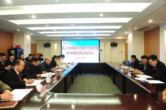 调研组分别在两院召开履职调研座谈会,听取了区法院副院长、区检察院副检察长及检委会专职委员任现职以来的个人履职情况汇报,并开展了现场民主测评。调研组对两院班子成员在服务大局、执法办案、司法为民、队伍建设等方面取得的成效与履职特色给予充分肯定,并就进一步完善履职报告内容、提升履职规范性提出了建议。